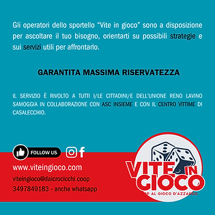 Infine, lo sportello è aperto per informazioni e approfondimenti sul gioco d'azzardo a cittadini e associazioni, con l'obiettivo di promuovere cultura sul tema, in piena sintonia con le azioni di sensibilizzazione e prevenzione sul gioco d'azzardo che il Comune di Bologna da diversi anni mette in campo.